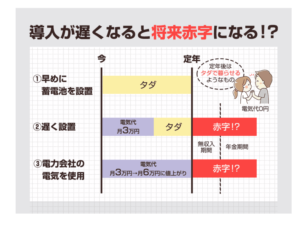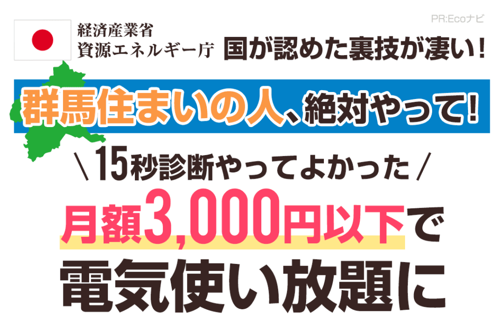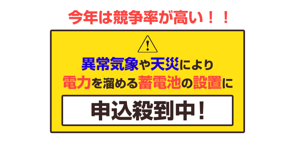 【群馬県限定】 💡 本日受付中! 💡 【4月8日追記】 今、申込みが殺到中! 人気の蓄電池は早い者勝ちなので 4月中の申込みをオススメします! 4月8日受付中! 節電のチャンスを逃して、 後で損しないように 「いくら安くなるのか」 だけでも 今のうちに確認してみて下さい! 【群馬県限定】 💡 本日受付中! 💡 \補助は早いもの勝ち!/